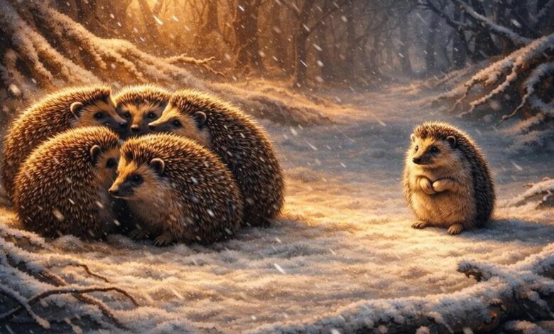 بين الدفء والوخز… حكاية القلوب التي تتعلّم فنّ المسافة في ليلٍ شتويٍّ طويل، حين كانت الريح تعوي فوق التلال كأنها…